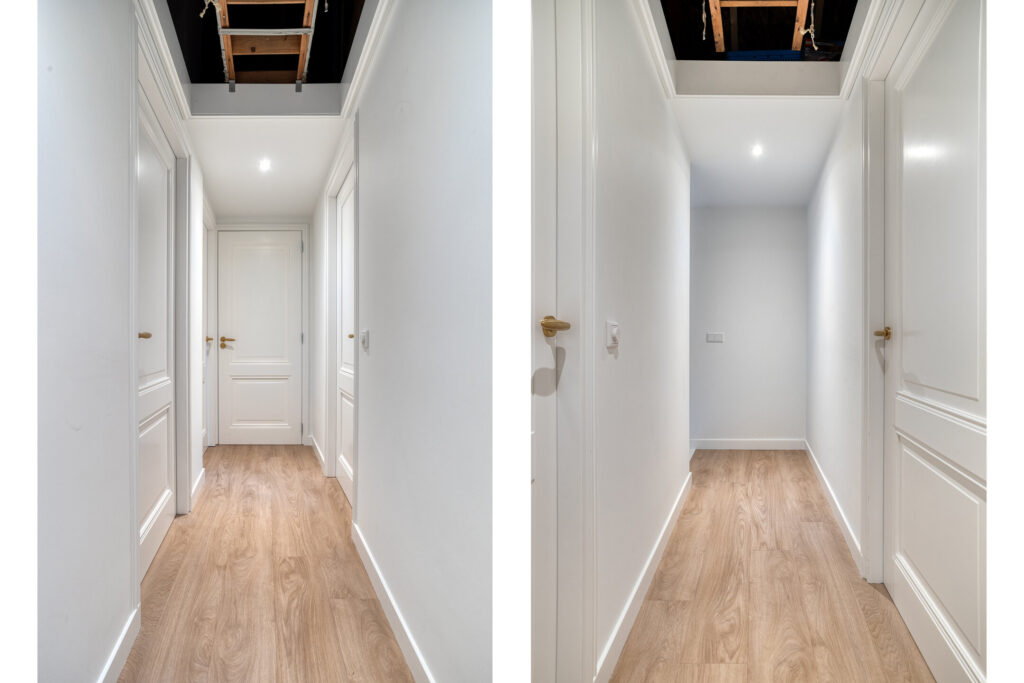 Overloop met toegang tot de slaapkamers en badkamer, en de vlizotrap naar de bergzolder; slaapkamer I aan de voorzijde met inloopgarderobe (ca. 5.35 x 3.60m); slaapkamer II aan de achterzijde met toegang tot het platdak (ca. 3.15 x 2.60m); slaapkamer III aan de achterzijde (ca. 3.15 x 2.55m); luxe en moderne badkamer voorzien van een ligbad, inloopdouche, wastafelmeubel en wandcloset (3.10 x 2.10m).