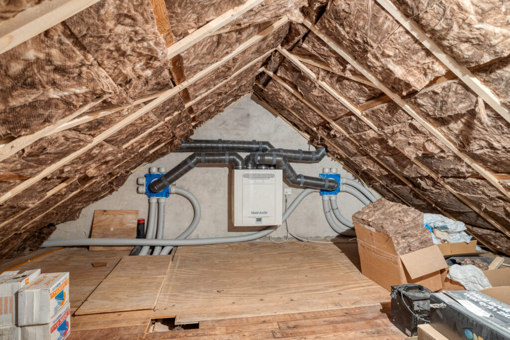 Grote bergzolder van 14m² op stahoogte (ca. 2.15m hoog t.p.v. de nok) met opstelplaats van de wtw-installatie.