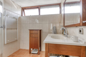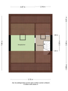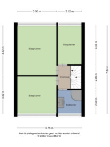 - Door de beperkte nokhoogte van de zolderverdieping mag de slaapkamer volgens de NEN norm niet als woonoppervlak worden meegerekend. De ruimte is echter functioneel als slaapkamer waardoor wij deze woning hebben aangeboden met een woonoppervlak van ca. 103 m².