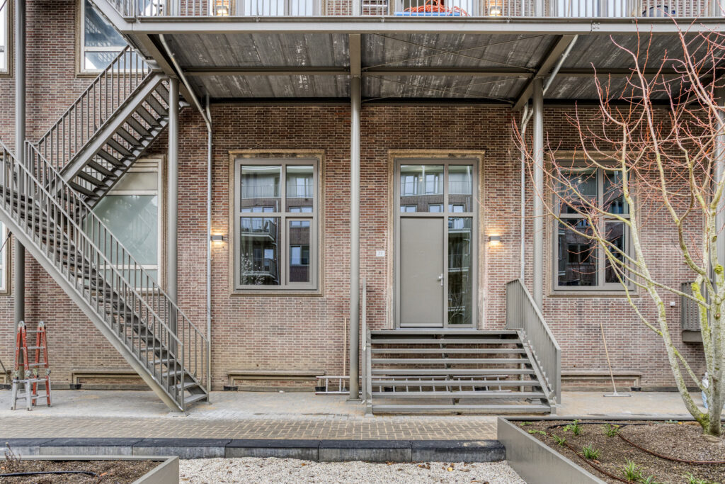 In de centrale entree van het appartementencomplex bevinden zich de brievenbussen, het bellentableau en de intercominstallatie. De centrale hal geeft toegang tot het trappenhuis, de gezamenlijke fietsenstalling, de bergingen en de lift naar de appartementen.