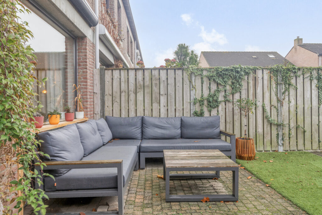 De tuin is gelegen op en zuidwesten, biedt veel privacy en is onderhoudsvrij aangelegd. Verder beschikt de tuin over een zonnescherm, een waterpunt en er is een stenen berging met elektra. Middels een poort is de achterom te bereiken. De voortuin is aangelegd in sierbestrating en is voorzien van een ruime overstek.