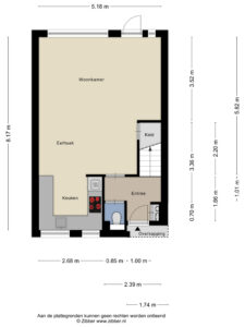 - Slaapkamer 3 (afm. 3.47 x 2.08 m) kleinere variant eveneens gelegen aan de achterzijde.