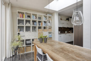 Via een vaste trap bereikt u de overloop, welke toegang biedt tot de cv- annex wasruimte. Hier is voldoende ruimte voor het plaatsen van was- en droogapparatuur. Tevens bevindt zich hier de opstelplaats van de cv-combiketel (bj. ca. 2016). Verder is er een vaste inloopkast met veel opbergruimte. Riante slaapkamer IV, voorzien van twee Velux-dakramen, een dakkapel en handige bergruimte achter de knieschotten aan zowel de voor- als de achterzijde. Vanuit deze slaapkamer is via een luik toegang tot de vliering met extra opbergruimte.