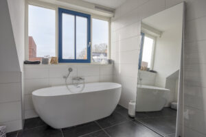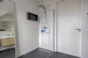 Middels een vaste trap bereikt u de ruime tweede verdieping. Overloop met de opstelplaats voor de was- en droogapparatuur, mechanische ventilatie en de Daalderop cv-ketel (bj. 2018). Tevens is er veel opbergruimte aanwezig achter de knieschotten. Riante Slaapkamer IV met dakkapel, hoge plafonds en een vaste kastenwand. Vanuit de slaapkamer is de ruime en luxe badkamer II bereikbaar. Hier treft u een inloopdouche, half vrijstaand bad, wastafelmeubel en een dakkapel.