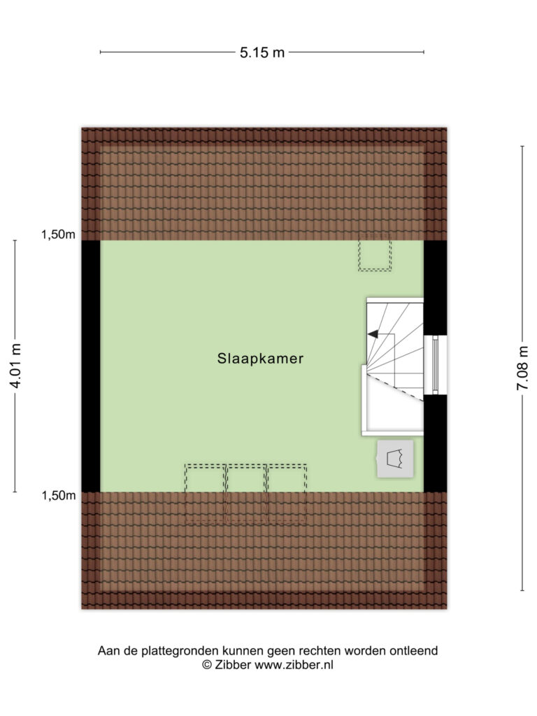 - Slaapkamer 3 (ca. 4.14m x 2.09m), kleinere variant gelegen aan de achterzijde;
