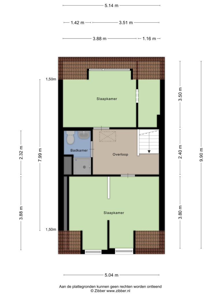 Ruime overloop met toegang tot de slaapkamers en de badkamer. Ruime slaapkamer I gelegen aan de voorzijde van de woning, deze slaapkamer is eenvoudig om te bouwen naar 2 slaapkamers en voorzien van een dakkapel met kunststof kozijnen. Slaapkamer II gelegen aan de achterzijde van de woning, deze is tevens voorzien van een grote dakkapel met kunststof kozijnen, ruime slaapkamer met walk - in- closet. Midden op de verdieping is de volledig betegelde badkamer gelegen. Deze is voorzien van een douche, 2e toilet en wastafelmeubel.