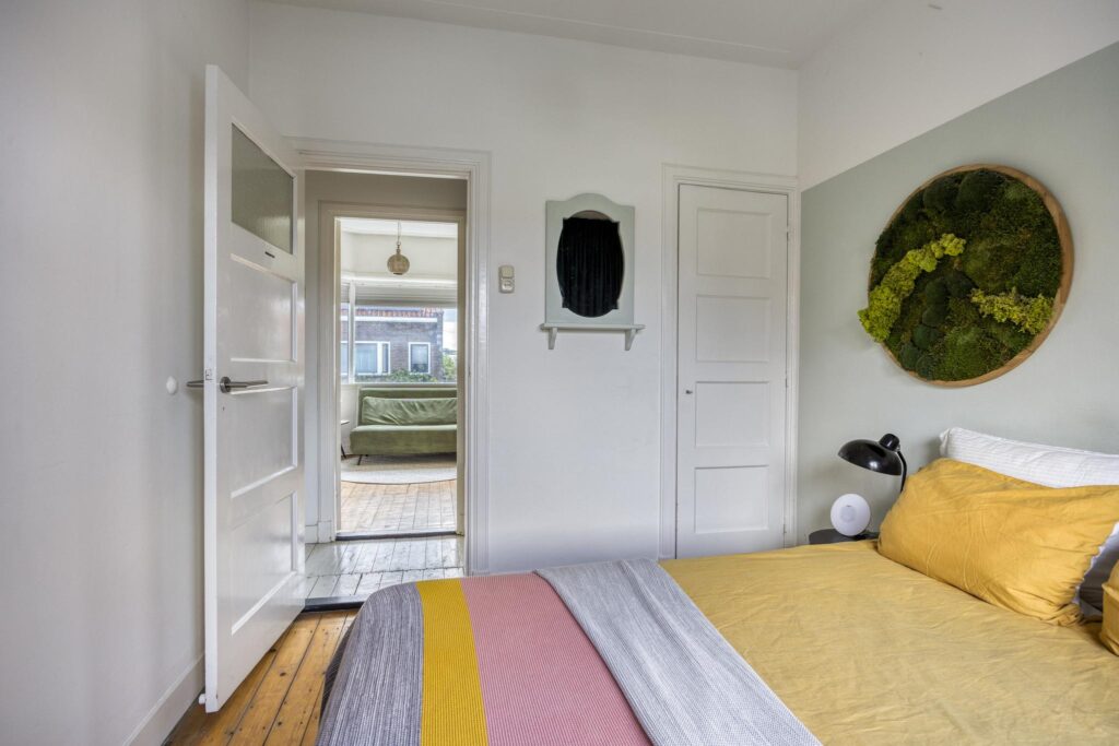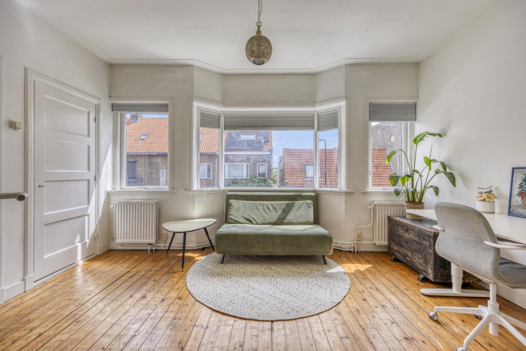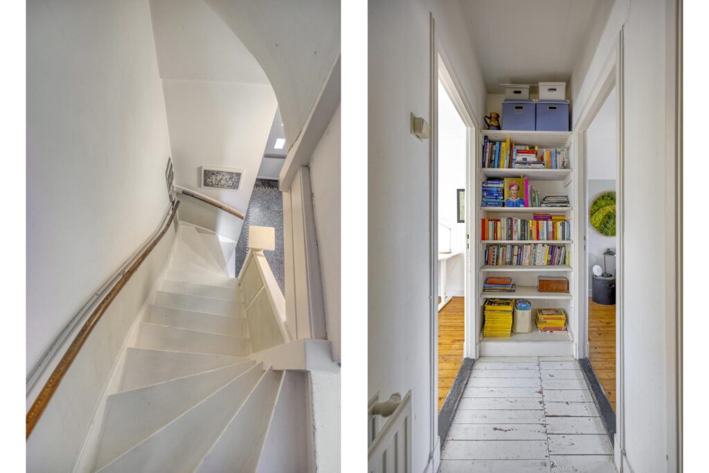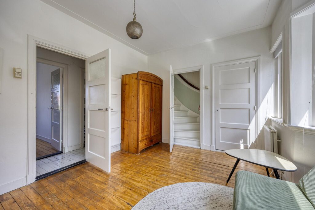 - Tussenkamer met sfeervolle erker. Deze kamer is voorzien van twee vaste kasten en biedt toegang tot de trapopgang naar de tweede verdieping. De tussenkamer is ideaal in gebruik te nemen als speelkamer of kantoor.