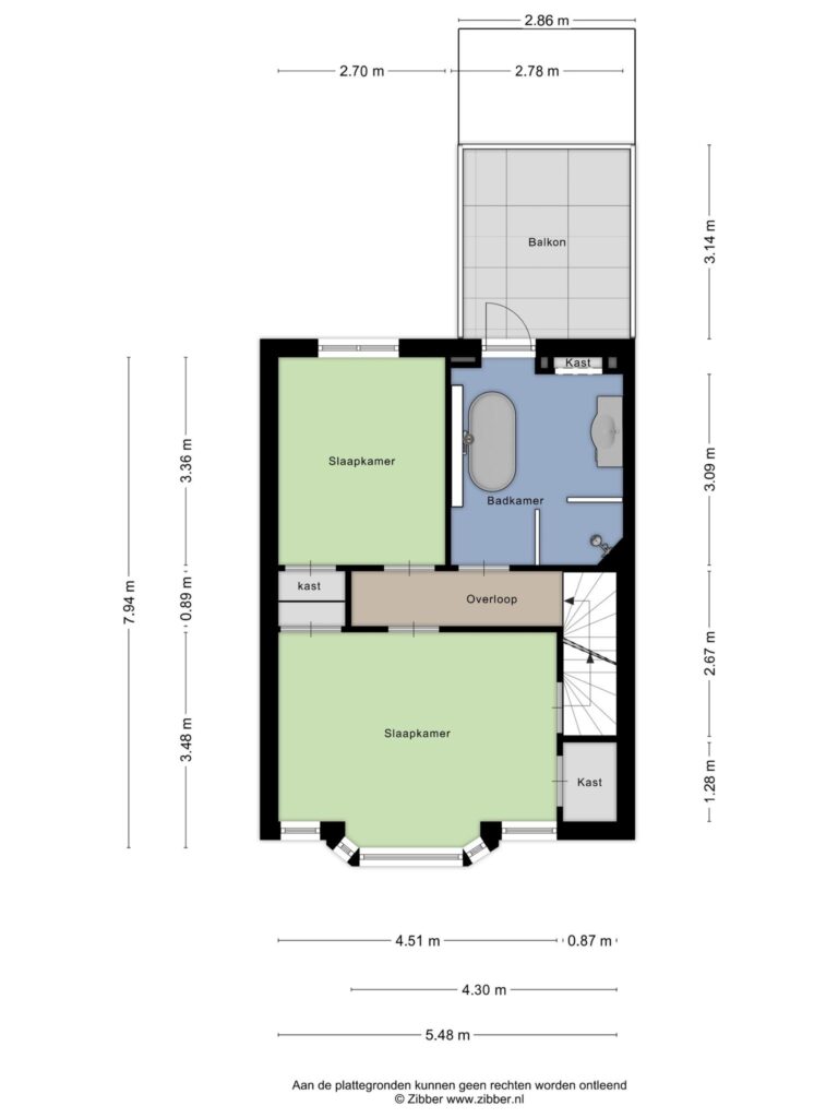 Middels een vaste trap bereikt u de voorzolder met veel bergruimte en toegang tot twee slaapkamers.