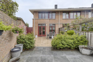 Vanuit het comfort van dit heerlijke woonhuis is het gehele jaar door ook volop van de verzorgde tuin met optimale privacy te genieten. De achtertuin is ingericht (2022) met keramische terrastegels, kunstgras gazon en diverse borders met beplanting. Verder zijn er diverse stopcontacten, een fonteintje, degelijke erfafscheiding en een waterkraan. De achtertuin is bereikbaar middels een achterom, tevens is er langs de woning doorloop naar de voortuin middels een afsluitbare poort. De voortuin is eveneens ingericht met keramische terrastegels. Ook is er aan de voorzijde een waterkraan aanwezig.