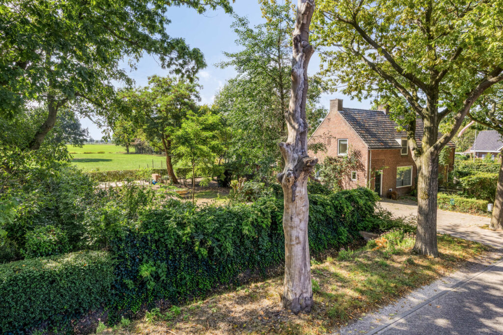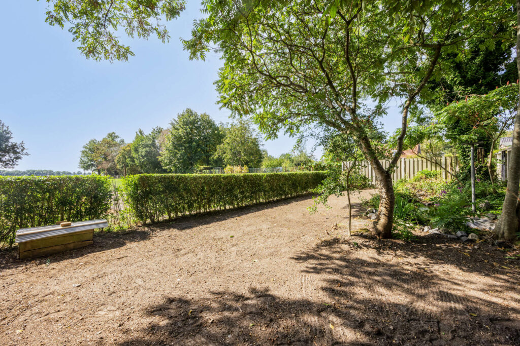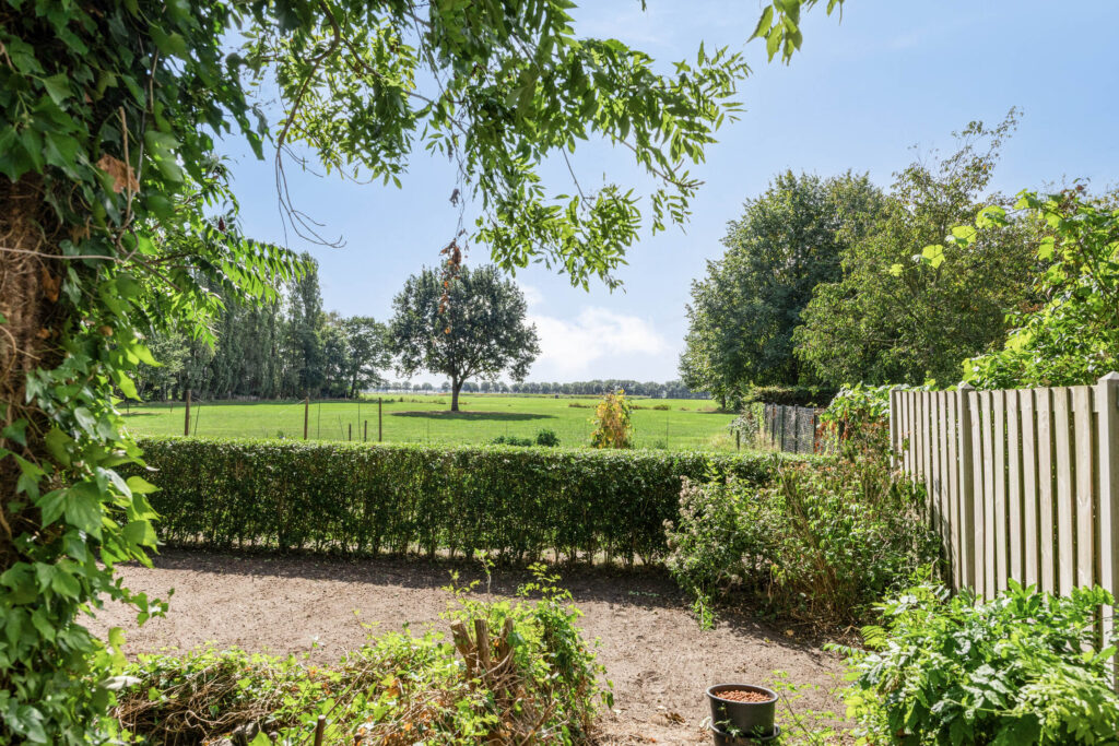 De tuin rondom biedt veel rust en privacy (vrije ligging voor- en achterzijde) en is ingericht met o.a. veel vaste beplanting, bestrating en een vijver. Opvallend is het fraaie uitzicht over de landerijen. De voortuin is eveneens ingericht met veel vast groen en biedt plaats aan een ruime oprit met plaats voor meerdere auto's.