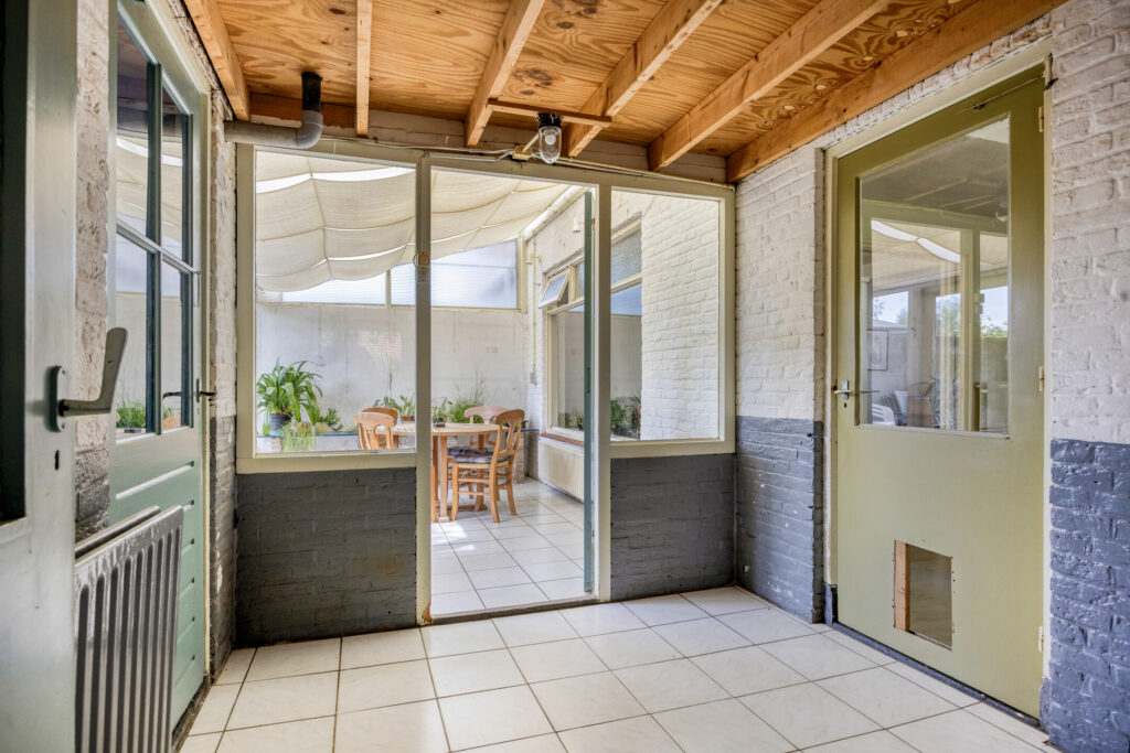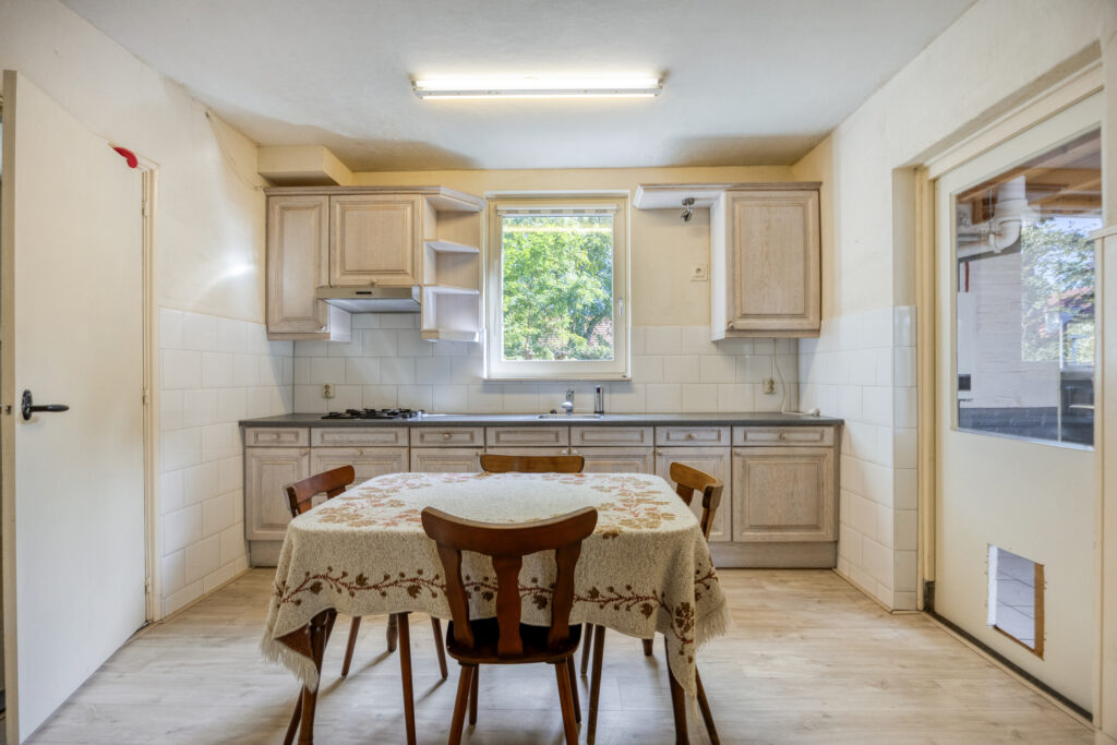 Vanuit de entree heeft men toegang tot de meterkast, de kelder, de trapopgang naar de eerste verdieping en de eetkeuken. De half-open eetkeuken keuken beschikt over een rechte keukeninrichting met 4-pits gaskookplaat, afzuigkap en diverse boven- en onderkasten. De woonkamer heeft veel lichtinval door de grote raampartijen en biedt vrij uitzicht over het groen aan de voor- en achterzijde. Vanuit de keuken heeft men toegang tot de bijkeuken met doorgang naar de garage, serre en de multifunctionele ruimte. Deze ruimte is voor meerdere doeleinden te gebruiken en beschikt over de aansluitingen ten behoeve van de wasapparatuur en biedt toegang tot het toilet. Via de verwarmde serre is er toegang tot de tuin. De garage is verwarmd en voorzien van een betonvloer, elektra en een elektrische sectionaaldeur.