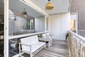 Royaal balkon (ca. 11 m2) gesitueerd op het zuidwesten en toegang tot de gezamenlijke tuin.