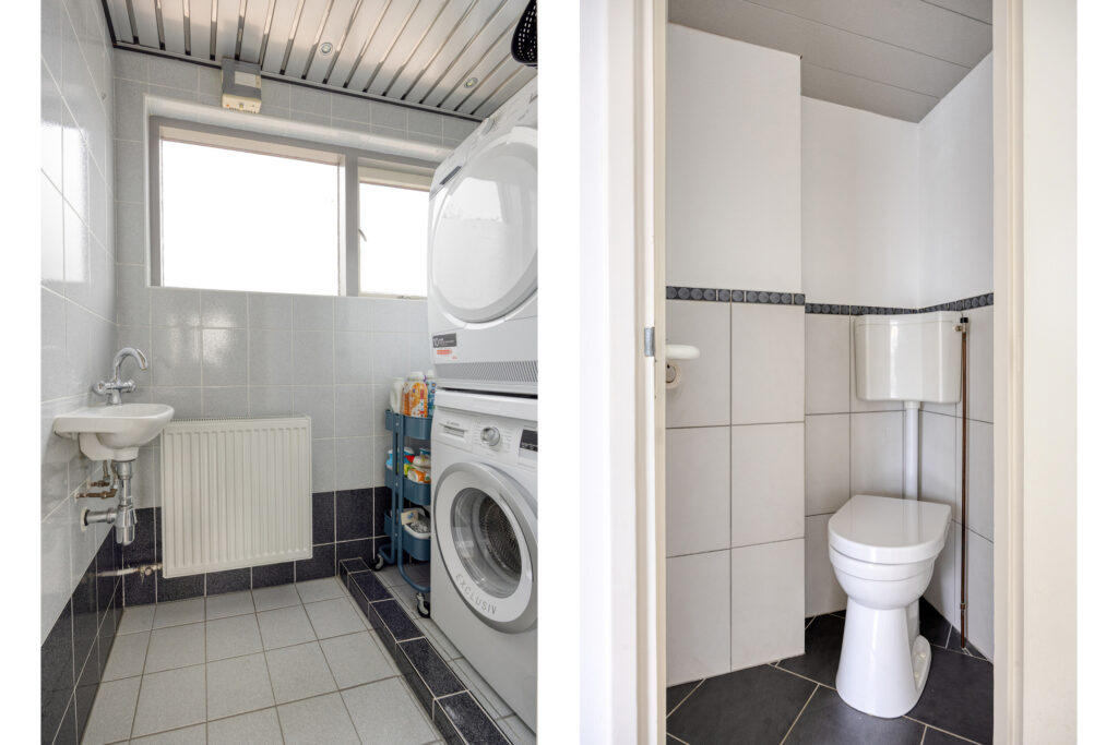 - Praktische wasruimte aan de voorzijde (voormalige badkamer) met aansluiting ten behoeve van de wasapparatuur en een wastafel.