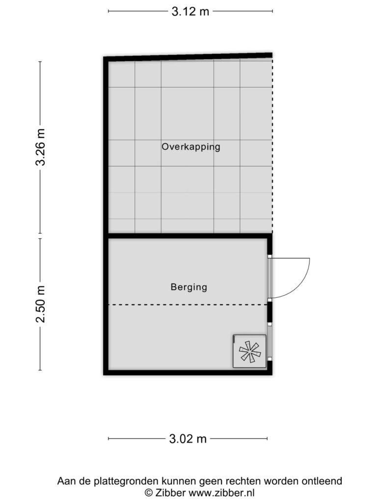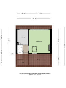 - Berging; (ca. 2.65 x 1.93m) afgewerkt met een laminaatvloer, heeft diverse bergruimte achter de schuine kant en dient als opstelplaats voor de CV-Ketel (Nefit 2012). Mogelijk is deze ruimte ook te gebruiken als slaapkamer.