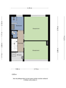 - Slaapkamer 2; (ca. 2.86 x 3.74 m) gelegen aan de voorzijde;