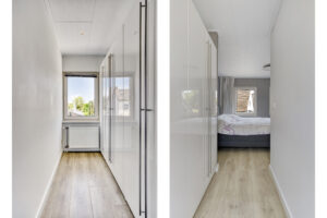 Overloop met toegang tot 2 slaapkamers, badkamer en trapopgang naar de zolderverdieping. De overloop evenals de slaapkamers zijn afgewerkt met een laminaatvloer.