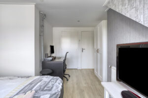 Slaapkamer aan de achterzijde met vaste kast en kunststof dakkapel.
