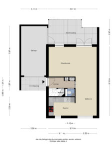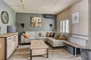 Hal met entree, toilet met wandcloset en fonteintje, vaste kast met meterkast en unit stadsverwarming en trapkast met veel extra bergruimte. De ruime L-vormige woonkamer heeft airconditioning en openslaande tuindeuren naar de veranda. De open keuken is gerenoveerd in 2022 en is gelegen aan de voorzijde van de woning. Qua inrichting is de keuken uitgevoerd met een keukenblok in hoekopstelling met composiet aanrechtblad en diverse boven- en onderkasten. Aan inbouwapparatuur is aanwezig: een 4-pits inductie kookplaat, combi-oven magnetron, vaatwasser, koel-vriescombinatie en een afzuigkap.