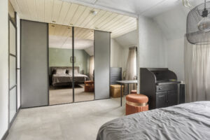 Grote open zolderruimte met veel bergruimte, deze ruimte is uitermate geschikt voor het creëren van een voorzolder en/of twee extra afzonderlijke slaapkamers. Deze ruimte is voorzien van een Velux-dakraam en een praktische bergvliering. Tevens bevinden zich hier de aansluitingen ten behoeve van de wasapparatuur, de omvormer van de zonnepanelen evenals de unit mechanische ventilatie.