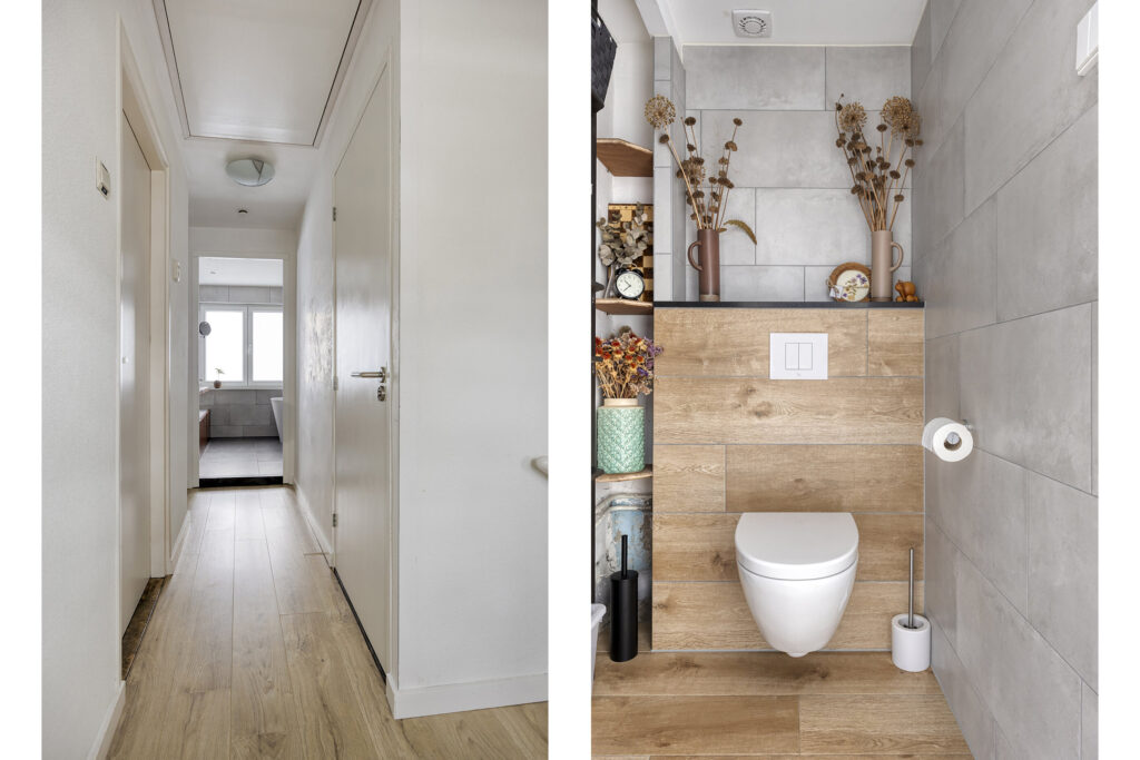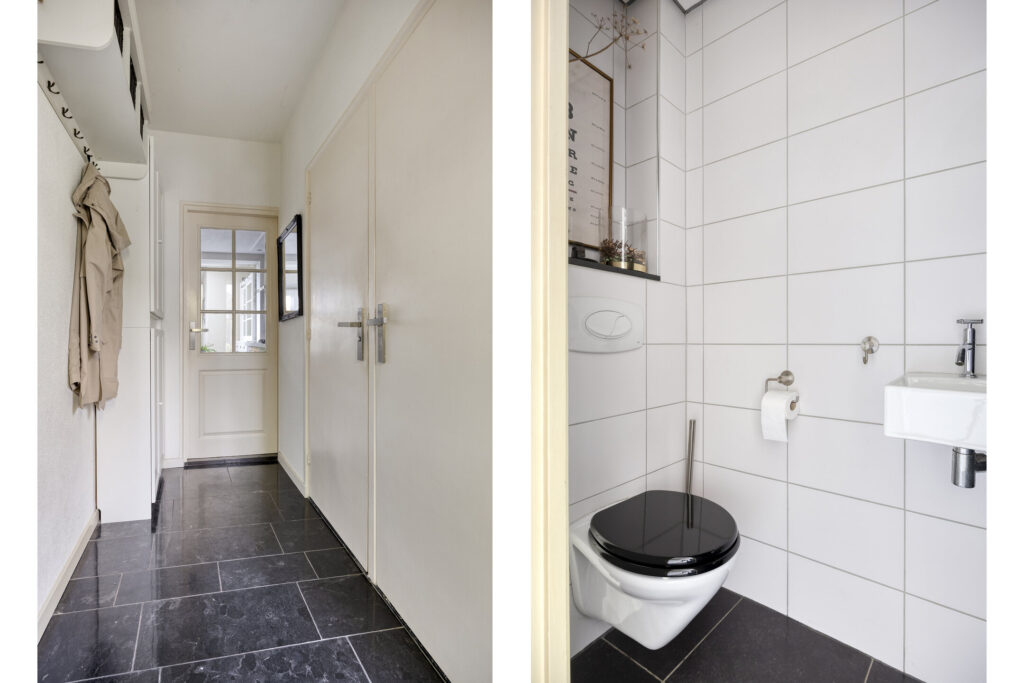 - Moderne toiletruimte met vloerverwarming, betegeld en voorzien van een hangcloset en bergruimte. TWEEDE VERDIEPING
