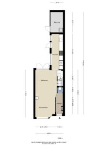 Hal met entree, meterkast en moderne toiletruimte met wandcloset en fontein; lichte en sfeervolle erker-woonkamer (ca. 6.80 x 3.05m) met houtkachel, tuindeuren aan de achterzijde en ruime kast onder de trap; dichte keuken (ca. 5.45 x 1.95m) met toegang tot de tuin en luxe en modern keukenblok voorzien van inductiekookplaat, afzuigkap, oven, koelkast, vrieskast en vaatwasmachine; tuin met achterom (ca. 8.70 x 2.30m) en toegang tot de aanpandige berging (ca. 3.15 x 1.90 m).