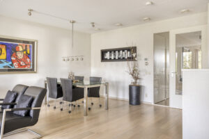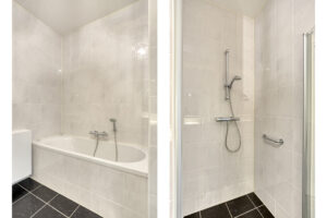 - Badkamer, volledig betegeld en uitgevoerd met een inloopdouche met glazen deur, tweede toilet, wastafel, zwevende wandkast, ligbad en ventilatie;