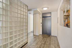 Centrale entree met bellentableau/videofoon, brievenbussen en toegang tot de lift en de trappenhal.