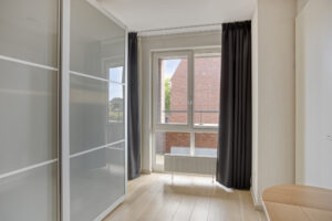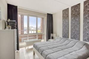 - Slaapkamer 2 is eveneens gelegen aan de galerijzijde en voorzien van voorzien van een inbouwkast en een vrijstaande kast (blijft achter);