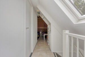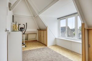 Ruime voorzolder met kunststof Velux dakraam en aansluitingen voor was- en droogapparatuur.- Slaapkamer 4 (ca. 3.05m x 5.75m) met kunststof dakkapel en veel bergruimte in de kniesschotten.