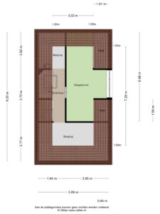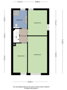 - Slaapkamer 3, (ca. 4.35m x 2.10m) gelegen aan de voorzijde;