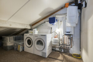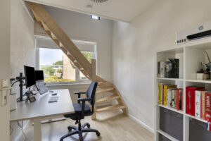 Middels een vaste trap vanuit de voorslaapkamer bereikt u de tweede verdieping. U kunt hier een speelse slaapkamer creëren i.c.m. een kantoorruimte of speelkamer op de eerste verdieping. Tevens is op de tweede verdieping veel opbergruimte aanwezig. Middels een loopdeur is een stook/ wasruimte bereikbaar hier bevinden zich de aansluitingen t.b.v. de was/droogapparatuur, opstelplaats HR-Combiketel, mechanische ventilatie systeem en de omvormer van de zonnepanelen.
