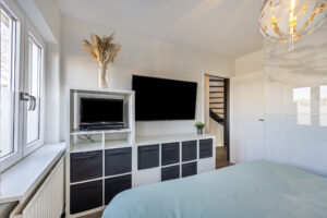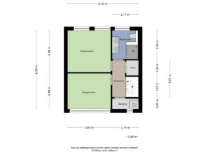 - Slaapkamer 2, gelegen aan de achterzijde en eveneens voorzien van een rolluik (handbediend).