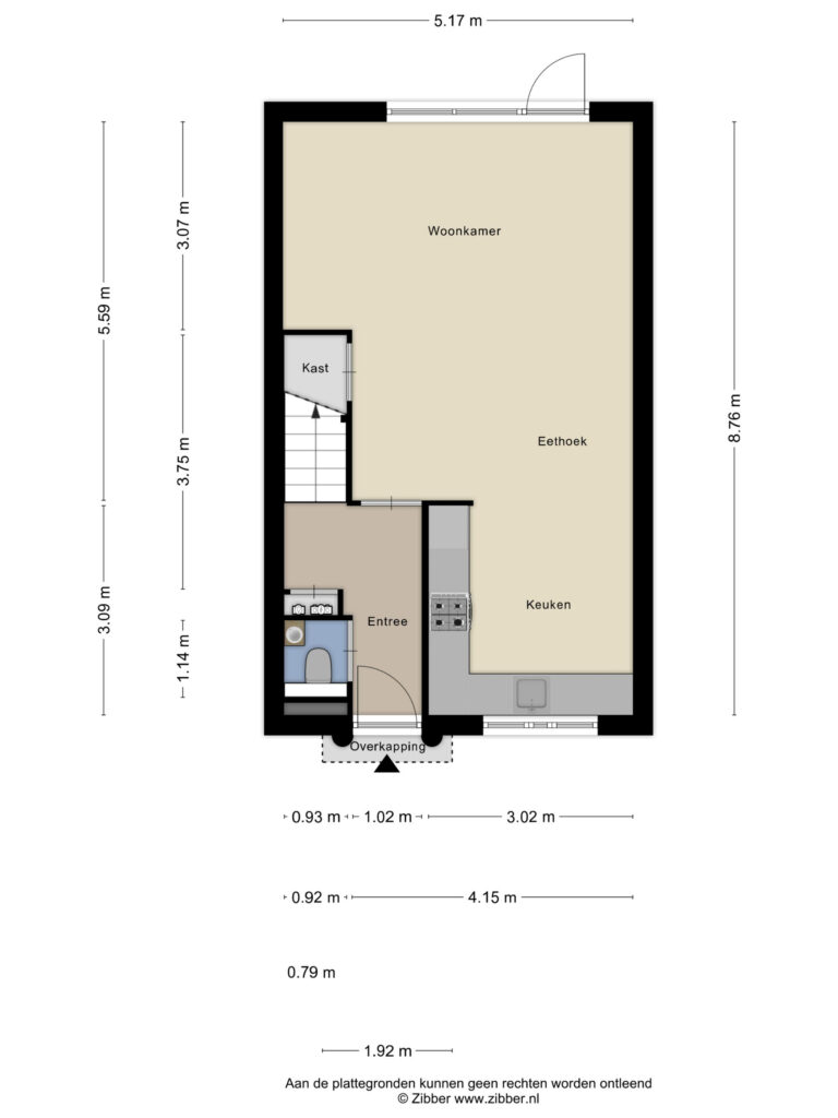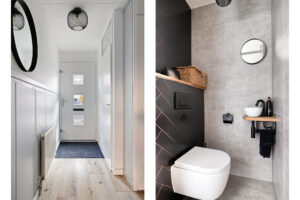Via de voortuin bereikt u de entree/hal, deze geeft toegang tot de meterkast, trapopgang naar de eerste verdieping en de vernieuwde, volledig betegelde toiletruimte (2024) met hangend closet en fonteintje. Op de vloer van de gehele begane grond ligt PVC.