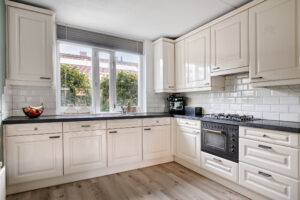 De ruime en tuingerichte woonkamer beschikt over een vaste kast onder de trap met veel opbergruimte. Vanuit de woonkamer is middels een loopdeur de achtertuin bereikbaar. Open hoekkeuken gelegen aan de voorzijde van de woning. Deze keuken is o.a. voorzien van een natuurstenen werkblad, 4-pits gaskookplaat, ingebouwde afzuigkap, vaatwasmachine, combi-oven, koelkast en vrieslades. Tevens treft u hier veel opbergruimte aan in de onder- en bovenkastjes.