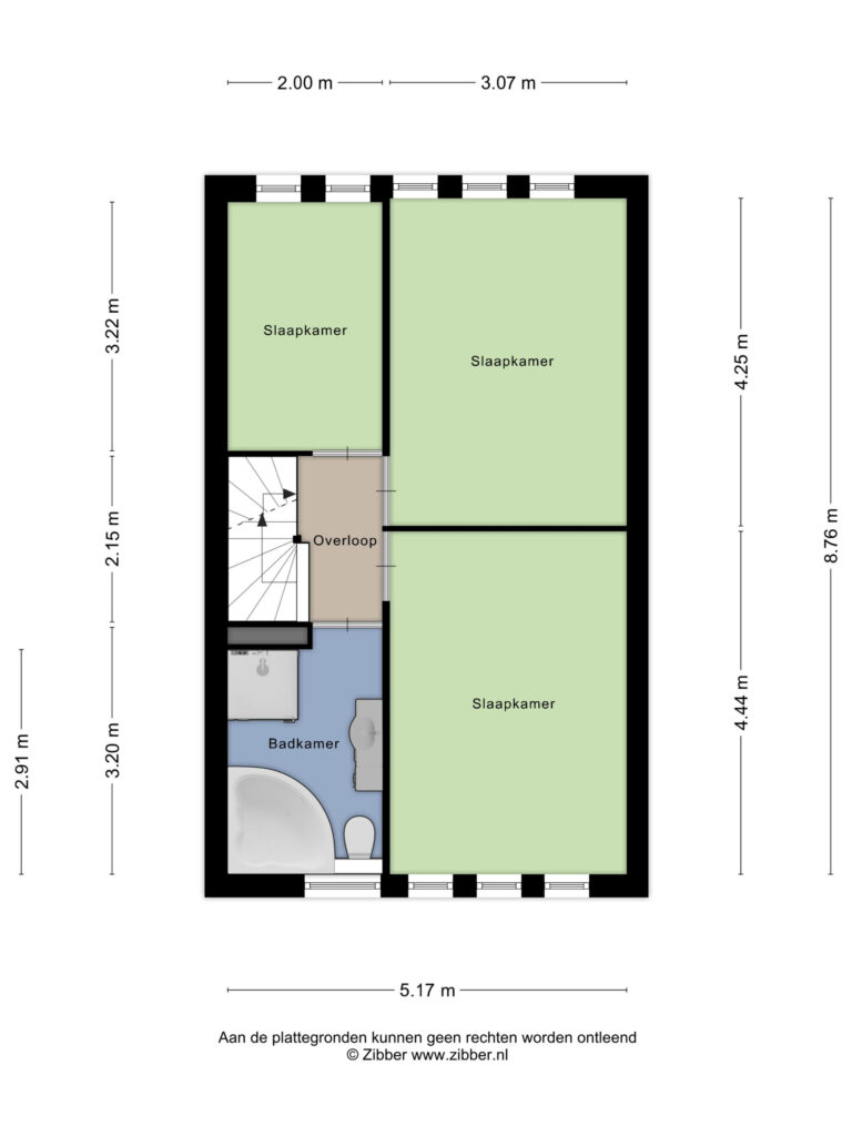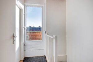 De overloop geeft toegang tot de drie slaapkamers, de badkamer en middels een vaste trap tot de tweede verdieping.