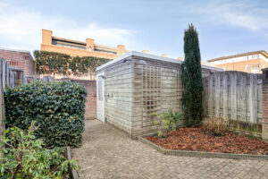 De nette achtertuin is gesitueerd op het noorden en grotendeels voorzien van sierbestrating en borders met vaste beplanting. Aan de achterzijde van de tuin is de vrijstaande berging gesitueerd welke voorzien is van elektra, tevens treft u hier een achterom.