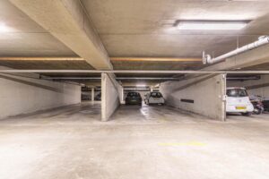 Het appartement beschikt over een eigen, vaste parkeerplaats in de parkeerkelder onder het complexe en deze is van binnenuit bereikbaar.