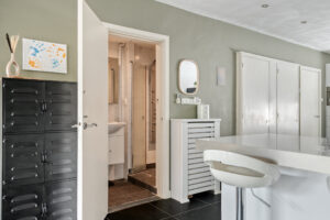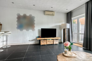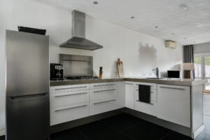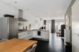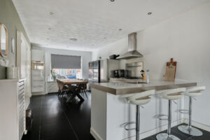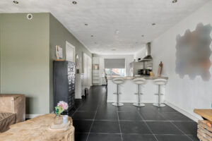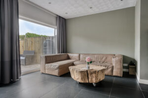 - Ruime lichte woonkamer met uitbouw over de volledige breedte;
