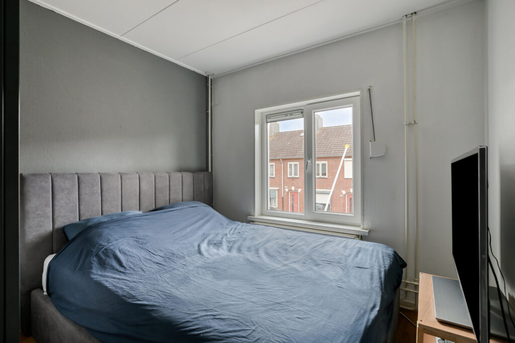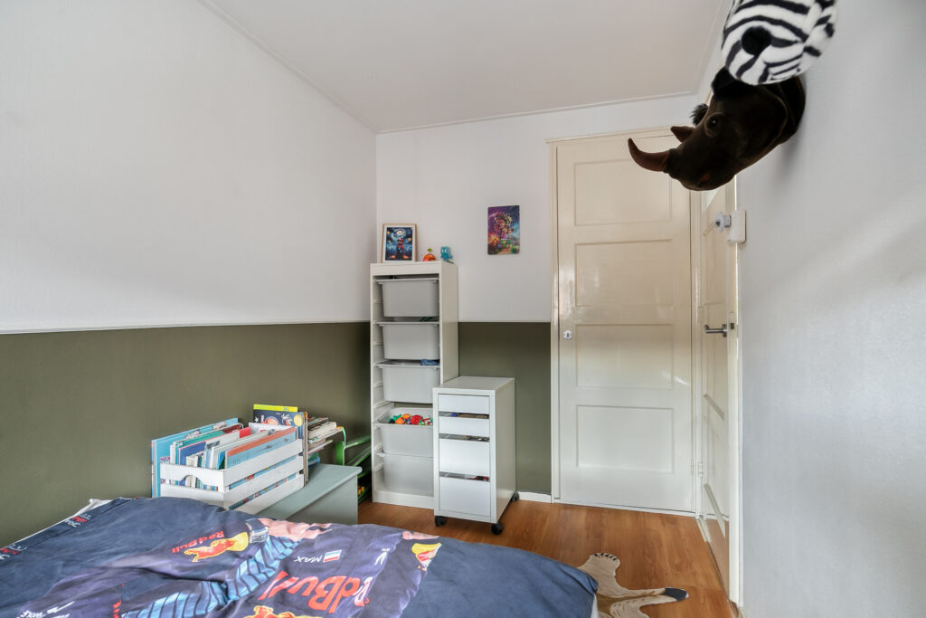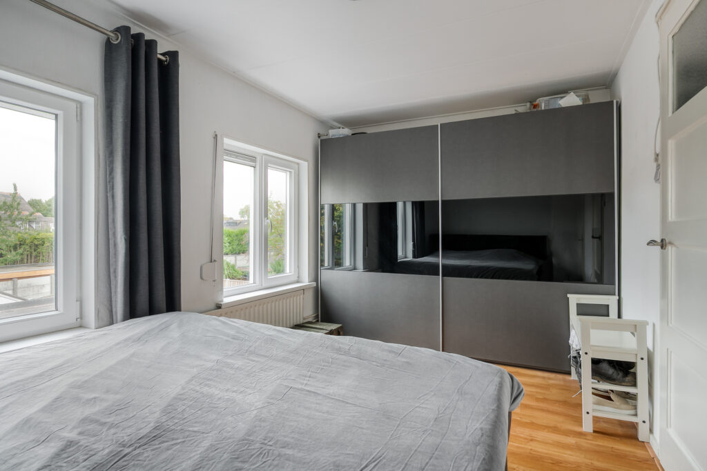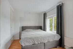 - Slaapkamer I achterzijde (ca. 2.69 x 4.72 m) met laminaatvloer, inbouwkast en draai/kiep raam;