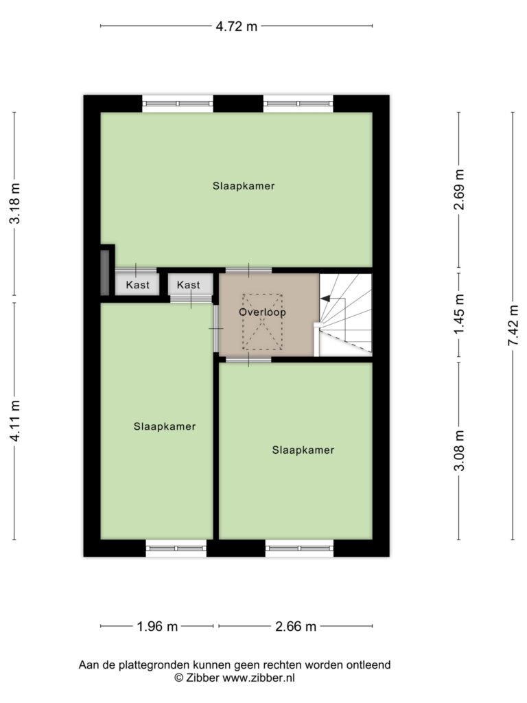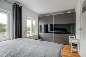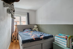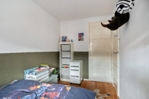 - Slaapkamer II voorzijde (ca. 4.11 x 1.96 m) met laminaatvloer, draai/kiep raam en rolluik;
