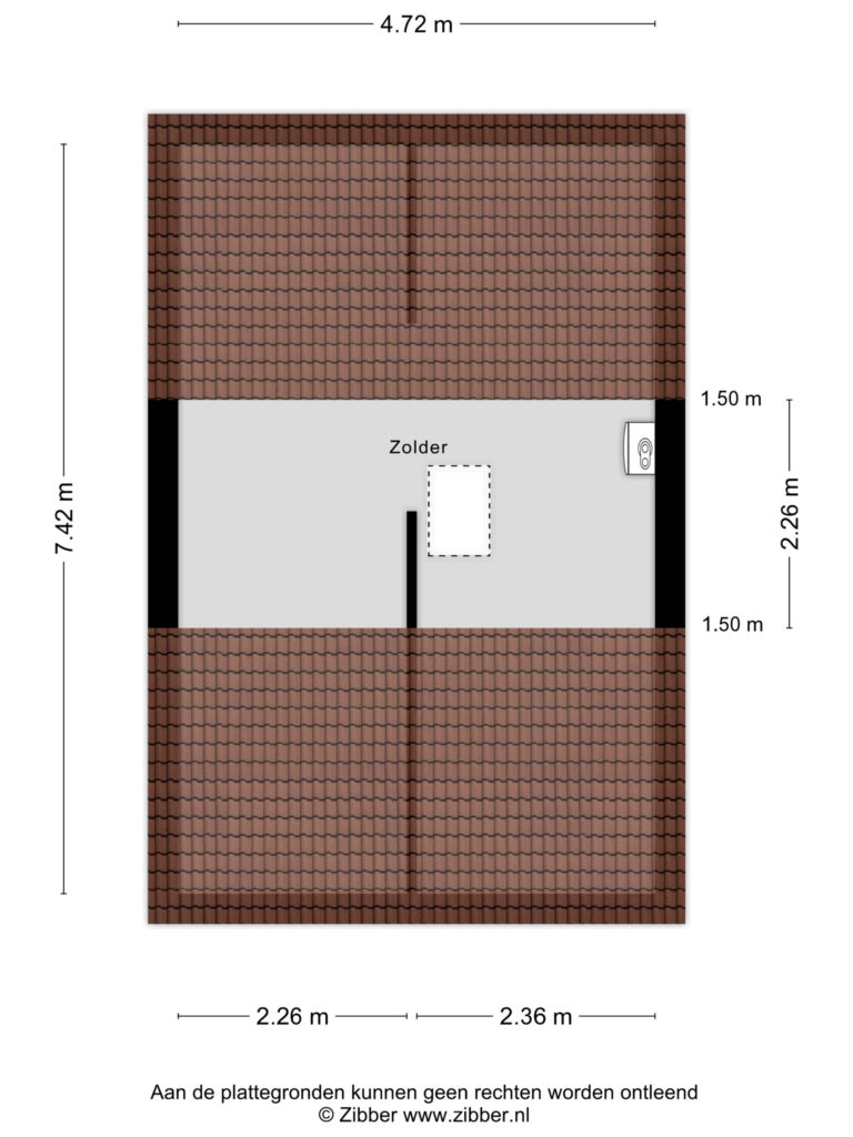 Bergzolder met bergruimte en opstelling van de CV-ketel (bouwjaar ca. 2018, ca. € 30,- per maand).