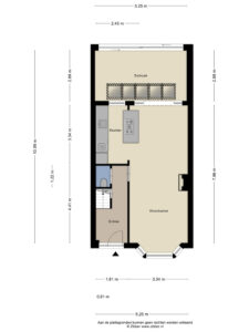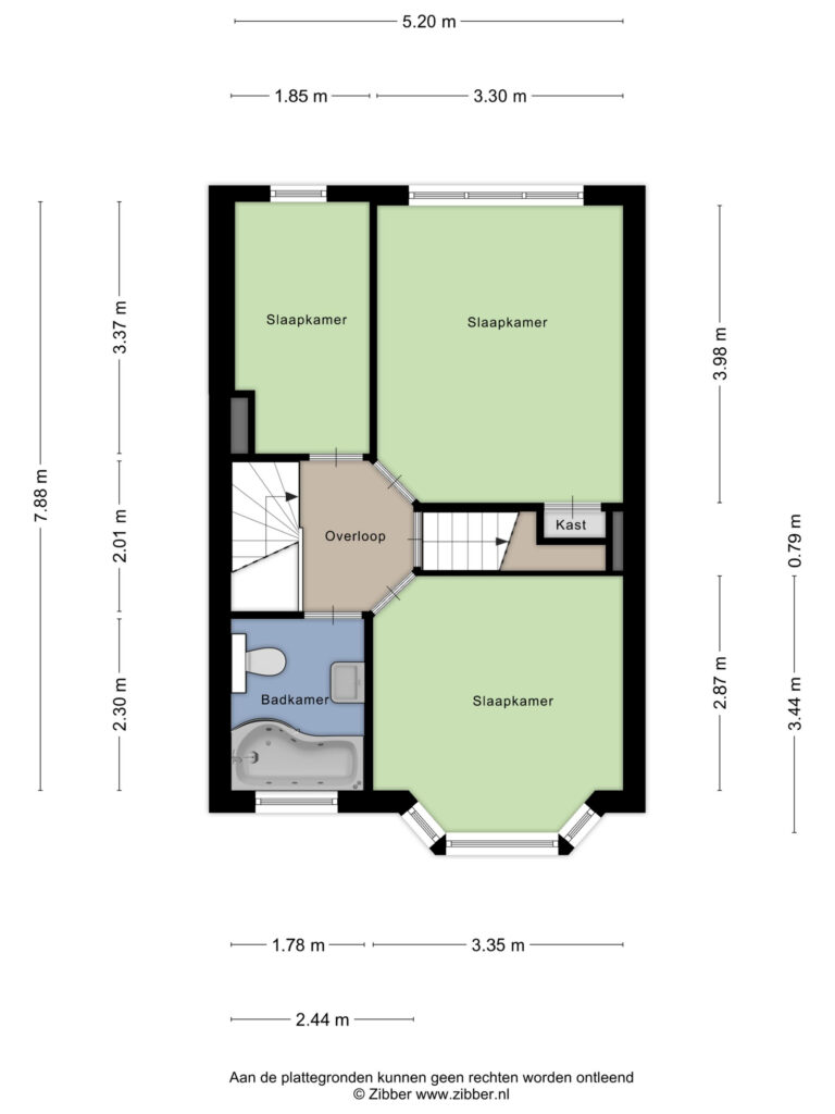 - Slaapkamer III (afm. ca. 3.37 x 1.85 m) kleinere variant gelegen aan de achterzijde.