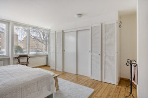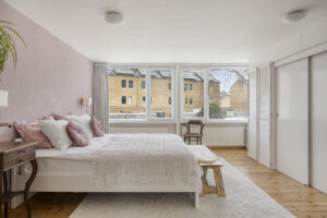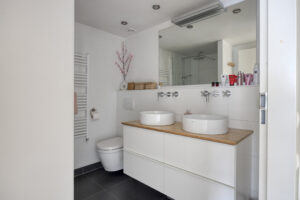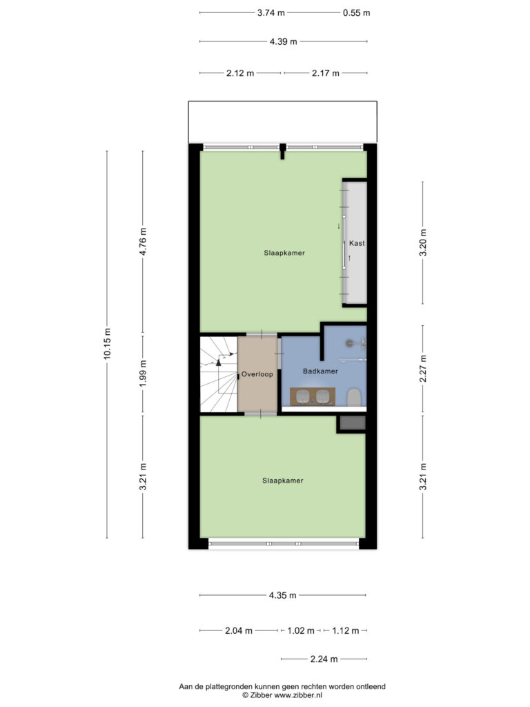 Overloop met trapopgang naar tweede verdieping; slaapkamer I (ca. 4.76 x 4.39 m) aan de achterzijde over de volledige breedte met 2 vaste kasten, (van origine was deze slaapkamer opgesplitst in 2 slaapkamers, dit is gemakkelijk weer terug te brengen naar de oude situatie); slaapkamer II (ca. 3.21 x 4.35 m) aan de voorzijde en eveneens over de volledige breedte gelegen; moderne badkamer van 2018 (ca. 2.60/1.99 x 2.27m) voorzien van inloopdouche met glazen spatwand, wastafelmeubel met dubbele waskom, spiegel, wandcloset en handdoekenradiator.
