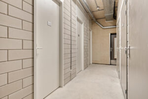 In de centrale entree van het appartementencomplex bevinden zich de brievenbussen, het bellentableau en de intercominstallatie. De centrale hal geeft toegang tot het trappenhuis, de gezamenlijke fietsenstalling, de bergingen en de lift naar de appartementen.