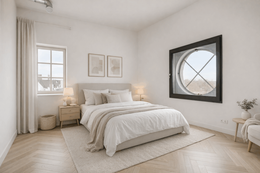 - Slaapkamer I (afm. ca. 3.97 x 3.35m) met authentiek stalen kantelraam met daarvoor een kunststof kozijn geplaatst;