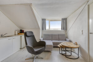 Ruime voorzolder met wasruimte; slaapkamer IV, ruim slaapkamer met kunststof dakkapel en pantry met wasbak.BIJZONDERHEDEN