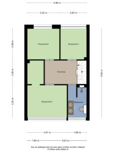 Overloop met trapopgang naar de 2e verdieping; slaapkamer I gelegen aan de voorzijde en voorzien van een royale inloopkast; slaapkamer II gelegen aan de achterzijde; slaapkamer III eveneens gelegen aan de achterzijde van de woning; moderne badkamer voorzien van inloopdouche, wandcloset, wastafelmeubel met dubbele waskom en verwarmde spiegel met verlichting.