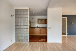 De ruime hal/entree met meterkast geeft toegang tot de 2 slaapkamers, badkamer, toiletruimte, inpandige berging/wasruimte en de woonkamer. De royale woonkamer met sfeervolle boogramen (met markiezen) heeft veel natuurlijk lichtinval en biedt toegang tot het balkon middels een schuifpui. Het balkon, met stroomvoorziening en is gelegen op het noorden en biedt vrij uitzicht. De keuken staat in open verbinding met de woonkamer en is uitgevoerd met een keukeninrichting in hoekopstelling met 5 pits gaskookplaat (SMEG), afzuigkap, combi oven/magnetron, vaatwasser en volop kastruimte. Vanuit de hal/entree is bereikbaar;