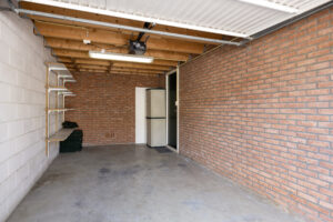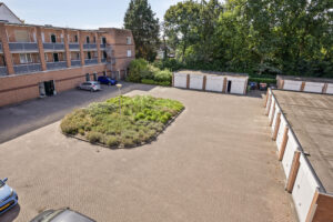 Via elektrisch bedienbare poort toegang tot parkeerterrein en de bij het appartement behorende garagebox (ca. 2.91 x 6.36m). Deze garagebox is voorzien van elektra en is toegankelijk via een elektrisch bedienbare stalen kanteldeur.