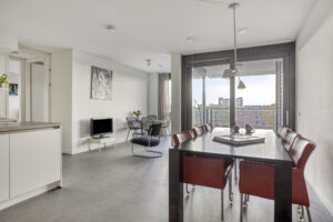 Ruime en lichte living welke middels een schuifpui toegang biedt tot het ruime balkon. Luxe open keuken met kookeiland. De keuken is o.a. voorzien van de volgende apparatuur inductie kookplaat met ingebouwde afzuiging, vaatwasmachine, combi-oven, koelkast en vrieslades. Tevens is er voldoende bergruimte aanwezig in de kasten en lades. Riant balkon met voldoende ruimte voor het plaatsen van een gezellige zit, u kan hier heerlijk genieten van de ochtendzon en een weids uitzicht over Oosterhout.